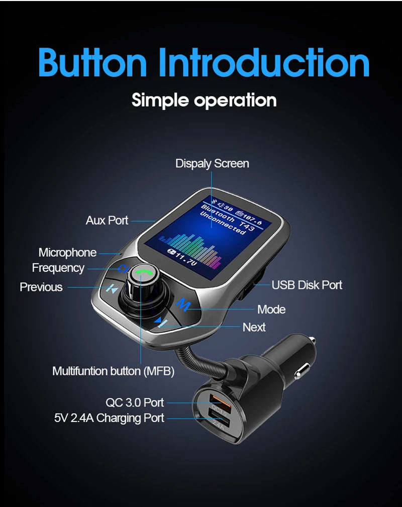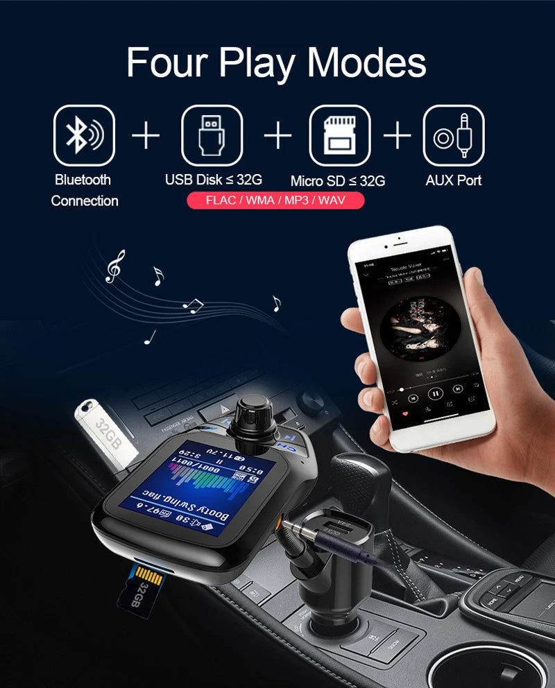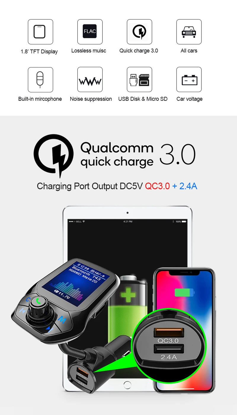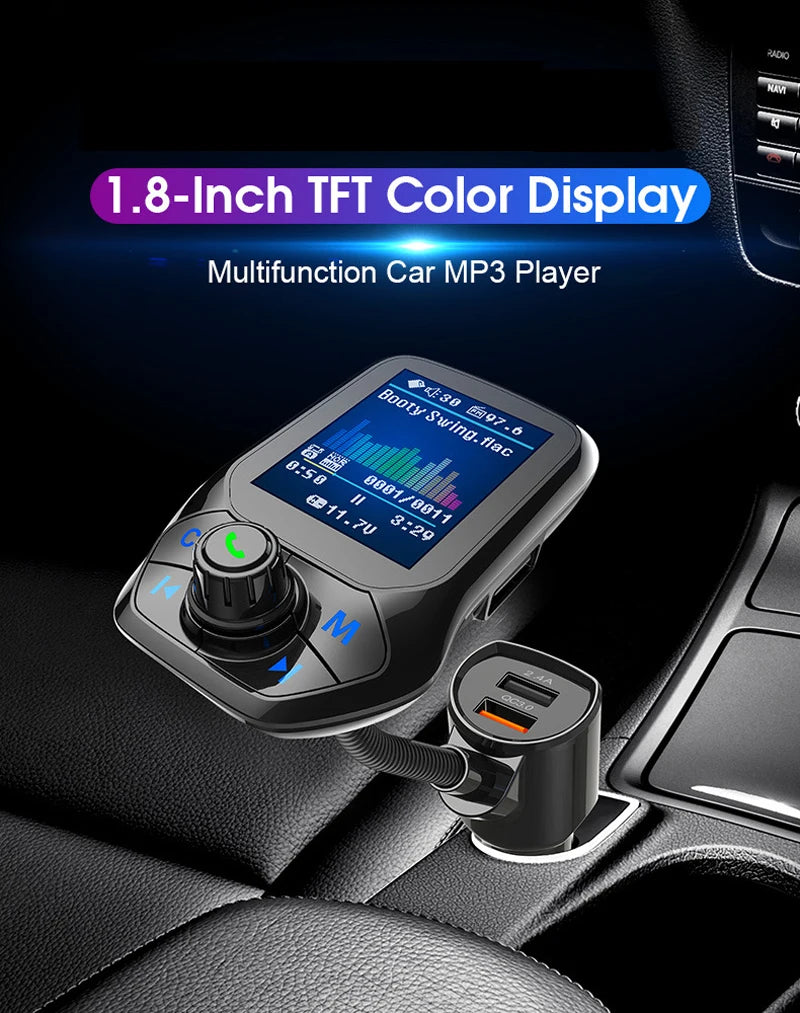 1.8 inch Color Display Bluetooth-compatible Handsfree Car Kit 3 USB Port QC3.0 Car Charger-FM Transmitter Car MP3 Music Player