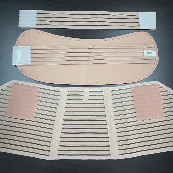 2.Attach the belt to the pad and pull both elastic sides until the desired tension and attach the closure to the abdominal pad.