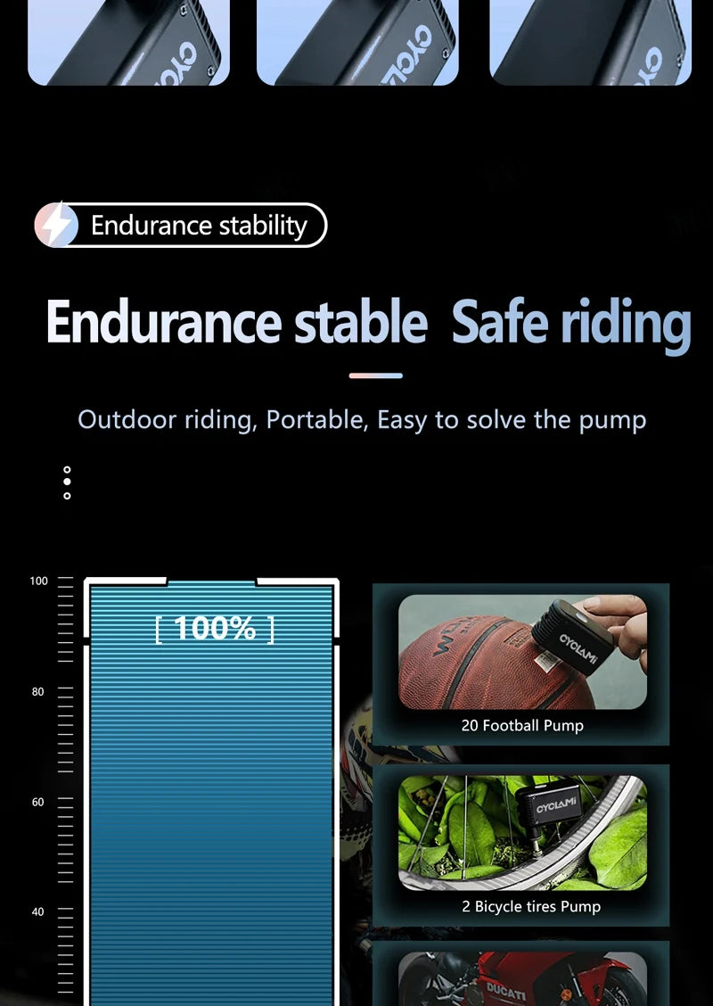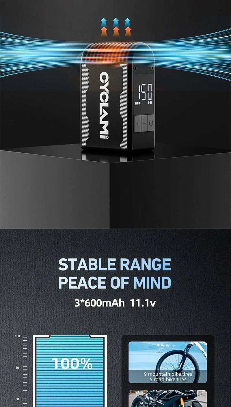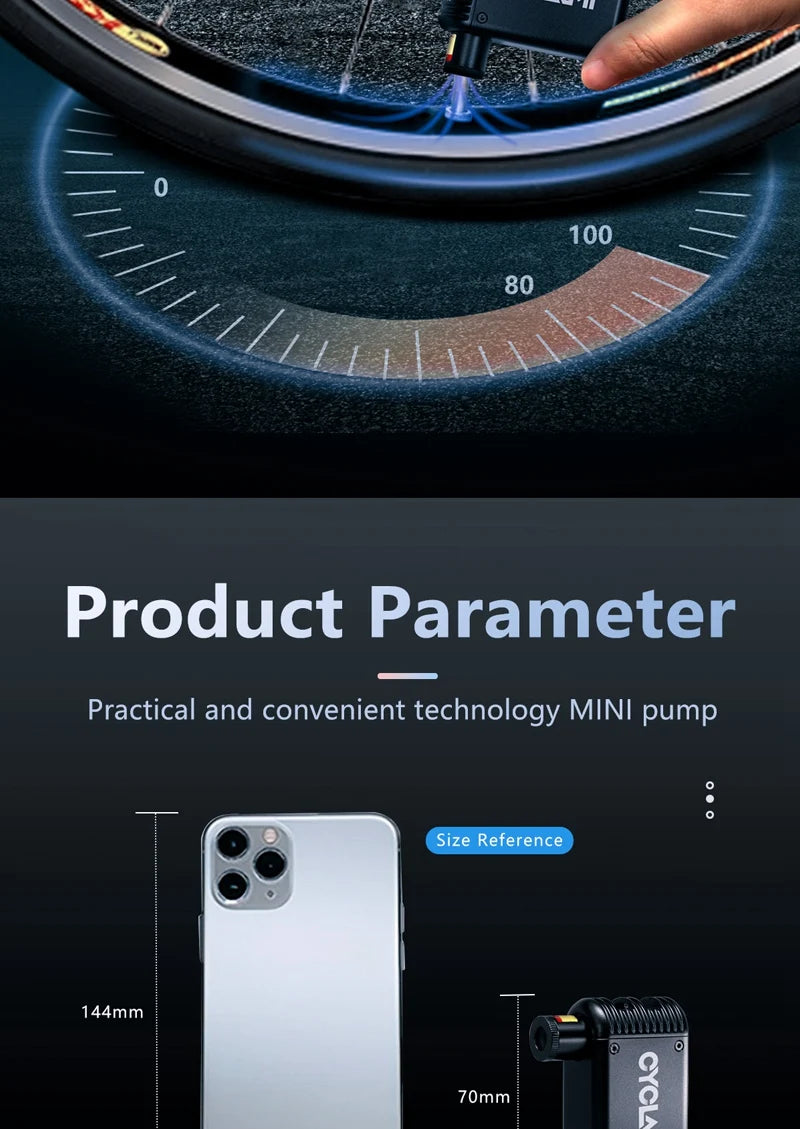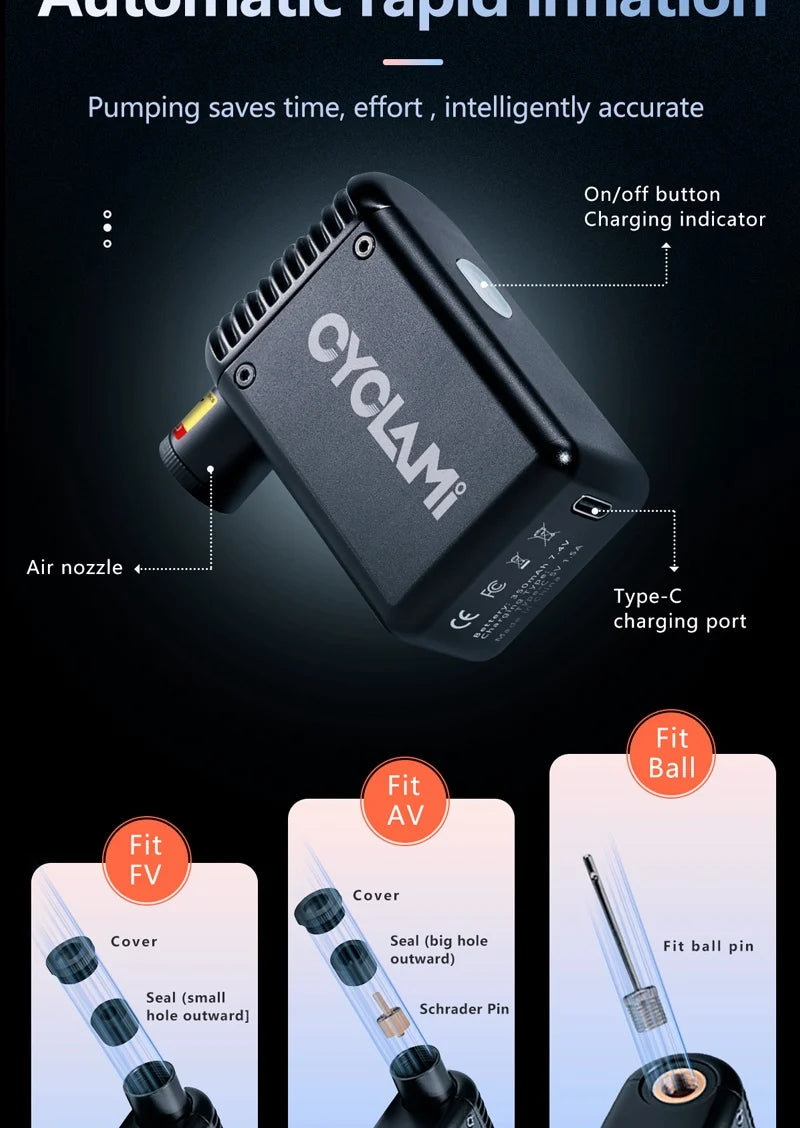 CYCLAMI Mini Plus Portable Pump for Bicycle-Cordless Air Inflator