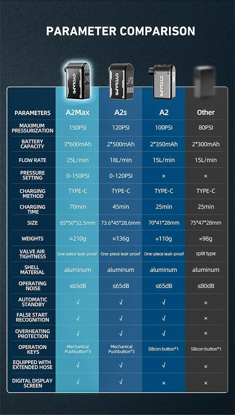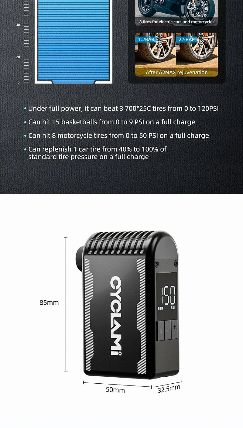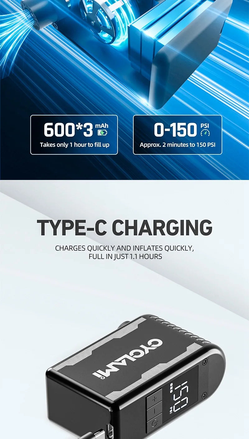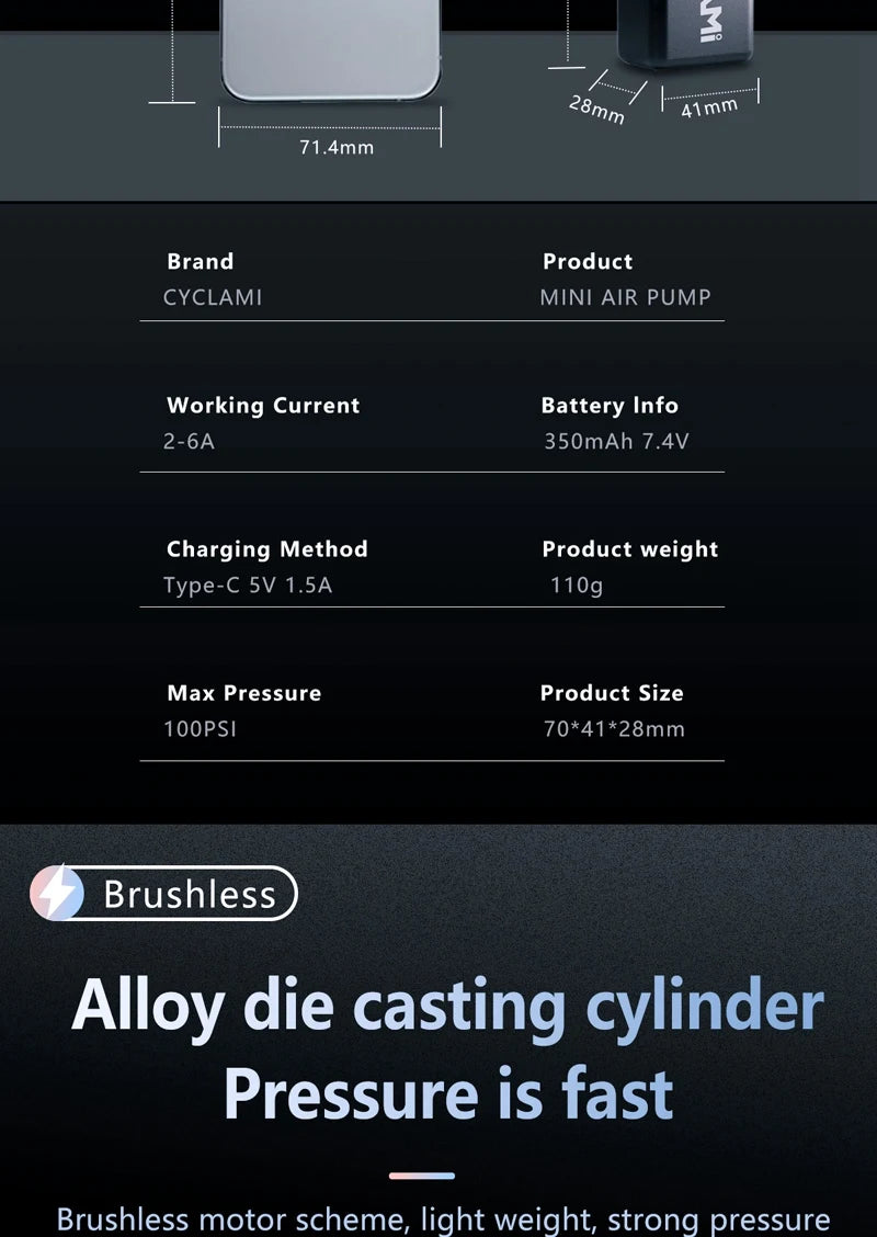 CYCLAMI Mini Plus Portable Pump for Bicycle-Cordless Air Inflator