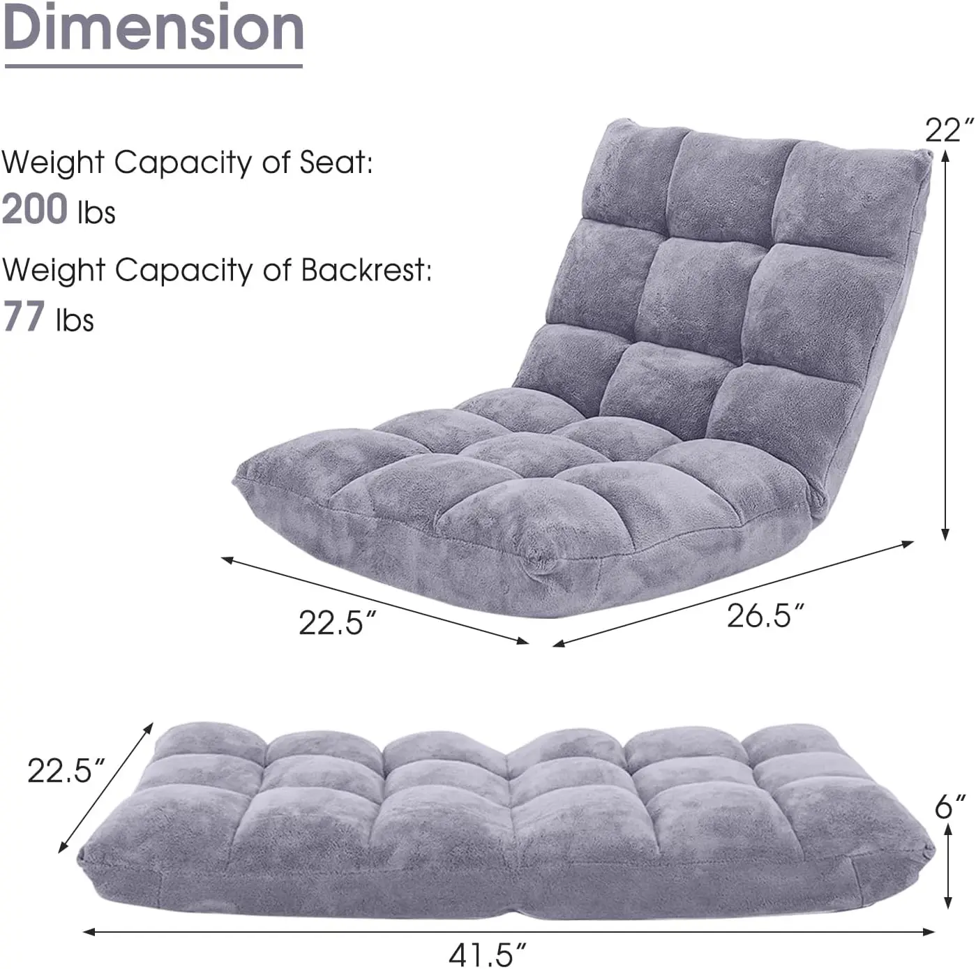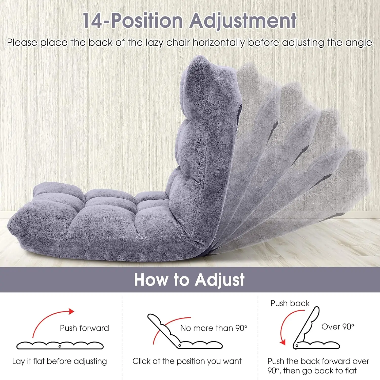 - 14-level Adjustments: This floor chair features a 14-position adjustable backrest that fulfills your different needs, such as napping, reading, gaming, working, watching TV and meditation. And the fully flat position is included for better relaxation.