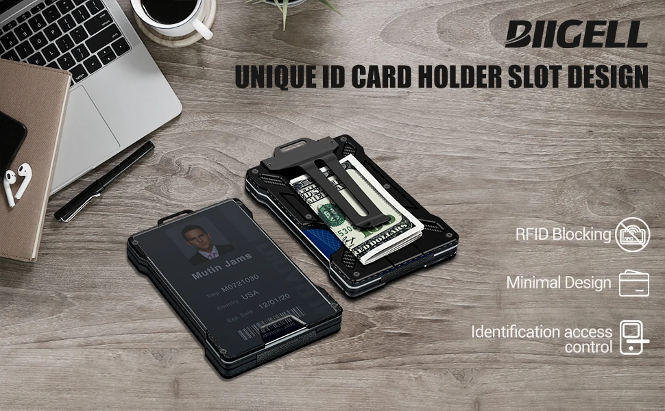 Men's Slim Aluminum RFID Wallet - 15 Card Capacity with Metal Money Clip