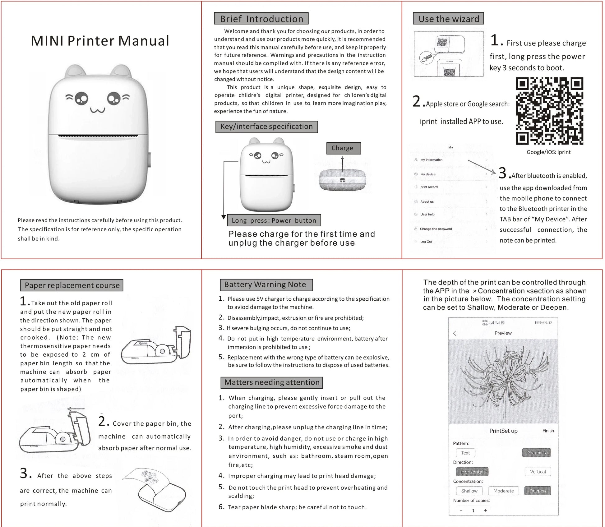 * Support multiple functions, it can print photos, labels, messages, lists, records, QR Code, web printing and so on. The APP offers a variety of fonts and themes to make your photos stylish.