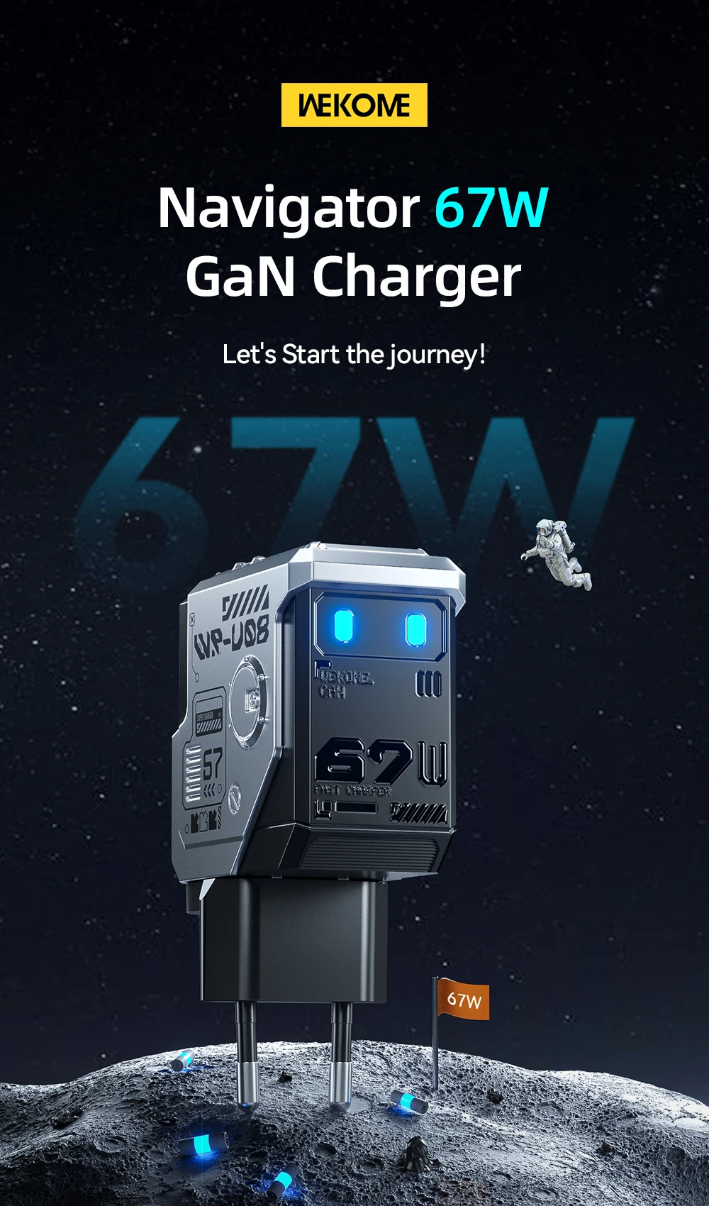 • Fast Charging: The Wecome robot 67W gan fast charger type C quick charge qc4.0 pd3.0 PPS fast USB charger ensures fast charging for your devices.
