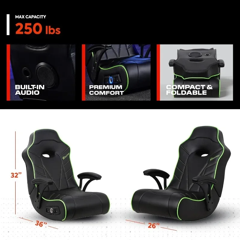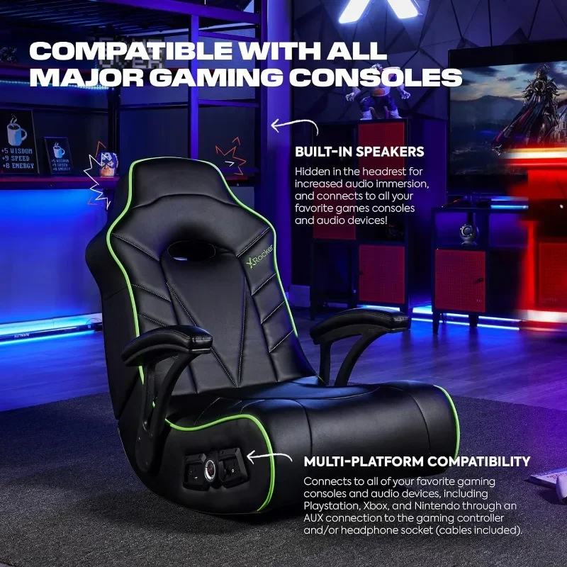 X Rocker XL Floor Gaming Chair, Use with All Major Gaming Consoles, Mobile, TV, Smart Devices, with Subwoofer, Headrest Mounted